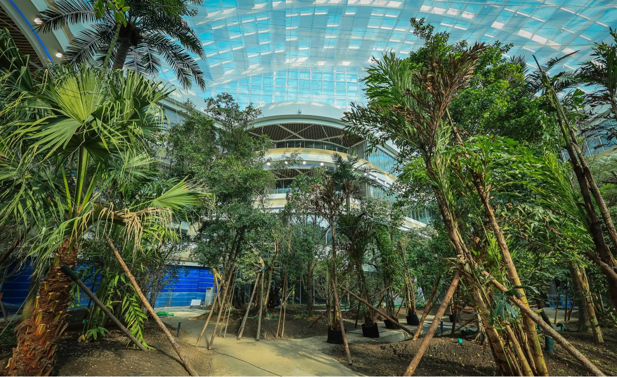 走進(jìn)建設(shè)中的長春萬達(dá)茂,各商家即將進(jìn)入到裝修階段,記者看到在碩大的一樓空間內(nèi),兩側(cè)密集分布著餐飲、服裝、文創(chuàng)、汽車等不同業(yè)態(tài)的品牌商家。穿過商場來到中庭,這里就是備受矚目的室內(nèi)雨林,在東北難得一見的熱帶珍稀植物在這里茂盛生長。