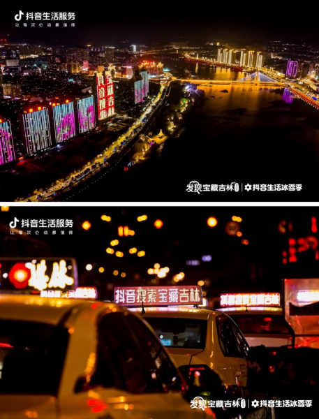 借助短視頻的傳播,吉林震撼的冬季霧凇景觀被更多網(wǎng)友看到。進入12月,抖音生活服務在吉林市阿什小霧凇島落地“登島趕大吉”活動,帶動小霧凇島搜索量創(chuàng)冬季新高,吉林市抖音團購搜索量顯著增長。系列活動得到吉林市委市政府的大力支持。華燈初上,吉林市松花江畔的地標樓體上燈光閃爍著“抖音搜索,寶藏吉林”字樣。全市穿梭街巷的數(shù)千輛出租車車頂燈箱,也在提醒本地市民及異地游客關(guān)注“發(fā)現(xiàn)寶藏吉林”活動。