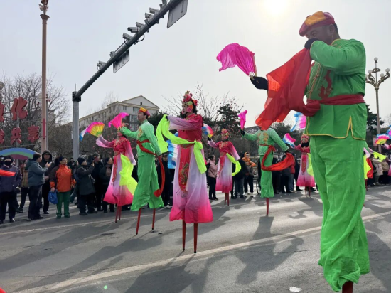 20支秧歌隊(duì)伍從大劇院出發(fā),沿南湖大街至敖東大街與長(zhǎng)白路交匯處行進(jìn)展演,傳統(tǒng)東北大秧歌、滿族秧歌輪番登場(chǎng),踩高蹺、舞龍舞獅……各類非遺絕活悉數(shù)展現(xiàn)。樂(lè)隊(duì)嗩吶與鑼鼓镲交織出快慢錯(cuò)落的傳統(tǒng)曲牌,演員們將秧歌的精髓演繹得淋漓盡致,成為街頭流動(dòng)的風(fēng)景線,隊(duì)伍一路載歌載舞,所到之處歡呼不斷,喜慶氛圍遍布敦城街巷,生動(dòng)展現(xiàn)“吉祥敦化”的和諧盛景。