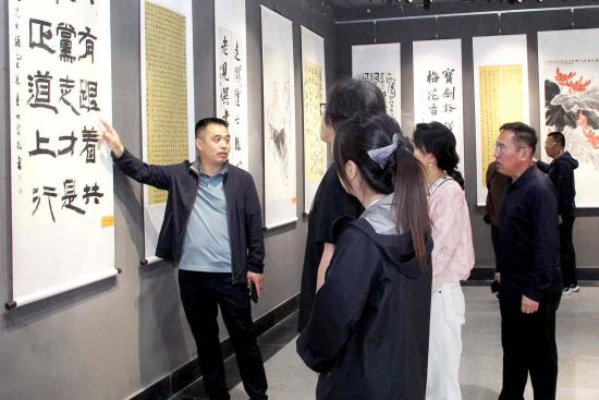 活動現(xiàn)場氛圍熱烈,民進會員、書畫愛好者等觀眾絡繹不絕,大家在書法作品前凝神品讀字里行間的民進精神,在絢麗畫作前輕聲探討,贊嘆創(chuàng)作技藝。參展作品主題鮮明,以書言志、以畫傳情,既追憶民進先賢風骨,又禮贊新時代豪邁征程,將民進精神與藝術追求相融,充分彰顯了民進人“為時代畫像、為時代立傳、為時代明德”的文化自覺,不僅是對民進發(fā)展歷程的深情回望,更是對未來奮進之路的美好展望。