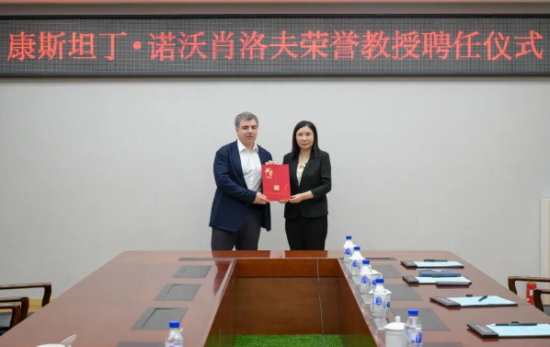 在聘任儀式上,郝群代表學校向康斯坦丁·諾沃肖洛夫教授頒發(fā)長春理工大學榮譽教授聘書。會談結(jié)束后,康斯坦丁·諾沃肖洛夫教授在東區(qū)圖書館報告廳為長春理工大學師生帶來了一場以“面向未來的材料”為主題的學術(shù)報告。
