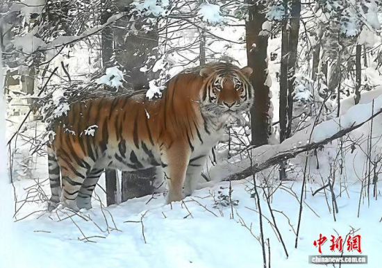 2024年12月3日,長(zhǎng)白山保護(hù)區(qū)工作人員發(fā)現(xiàn)的野生東北虎,拍攝時(shí)與老虎距離不到10米。(資料圖)(吉林省林業(yè)和草原局供圖)