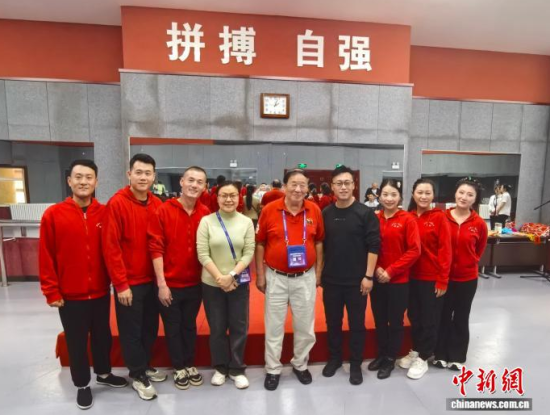 9月22日,吉林四平,戴锜(居中)在梨樹(shù)縣了解二人轉(zhuǎn)文化,與演員合照。 張至弘 攝