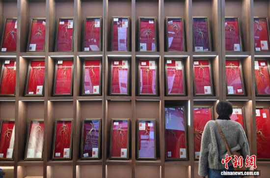 12月7日,吉林長春,參觀者在參觀人參。當日,2025長春國際醫(yī)藥健康產業(yè)博覽會開幕,具有當地特色的千年野山參、人參標本在人參展區(qū)展出,吸引了參觀者的目光。中新社記者 張瑤 攝