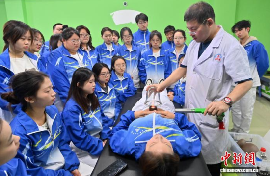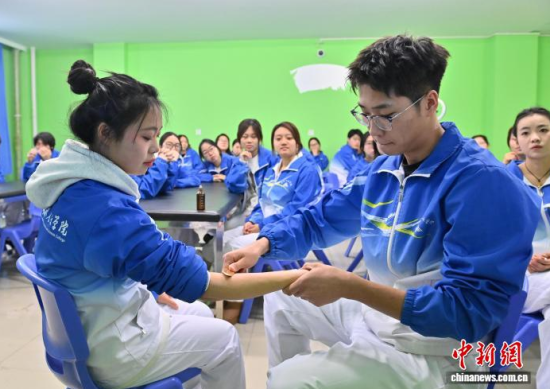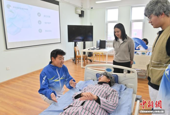 12月15日,在長(zhǎng)春人文學(xué)院,學(xué)生在實(shí)操介護(hù)技術(shù)。面對(duì)老齡化進(jìn)程與銀發(fā)經(jīng)濟(jì)發(fā)展,該校開(kāi)設(shè)了養(yǎng)老服務(wù)管理專業(yè),融合管理學(xué)、心理學(xué)、護(hù)理學(xué)等,設(shè)置介護(hù)福祉綜合實(shí)訓(xùn)、老年康樂(lè)活動(dòng)策劃與實(shí)施綜合實(shí)訓(xùn)、智慧養(yǎng)老實(shí)務(wù)等近30門課程,培養(yǎng)既懂運(yùn)營(yíng)管理又具備實(shí)操技能的復(fù)合型人才,吸引年輕人投身這一“朝陽(yáng)產(chǎn)業(yè)”。中新社記者 張瑤 攝