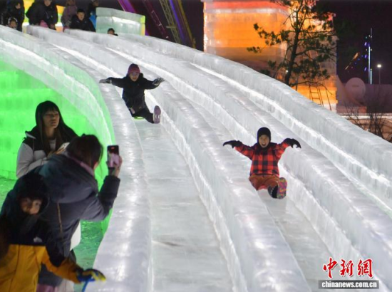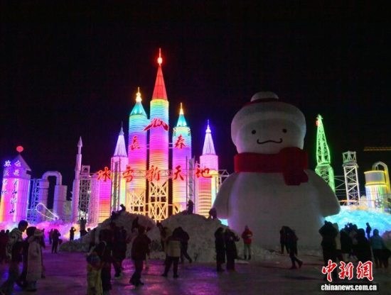 12月19日晚,長春冰雪新天地開門迎客。2025-2026雪季的長春冰雪新天地占地面積156萬平方米,開發(fā)了76萬平方米的冰雪游樂空間,總用冰用雪量達(dá)85萬立方米,冰雪雕塑200余座。隨著夜幕降臨,冰雕景觀亮燈,整個(gè)園區(qū)仿佛一座如夢如幻的冰雪王國。中新社記者 張瑤 攝