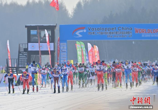 1月4日,第24屆中國長春凈月潭瓦薩國際滑雪節(jié)在長春開幕,來自33個國家和地區(qū)的2227名專業(yè)運動員和大眾滑雪愛好者在凈月潭的林海雪原間展開速度與耐力的較量。中新社記者 張瑤 攝