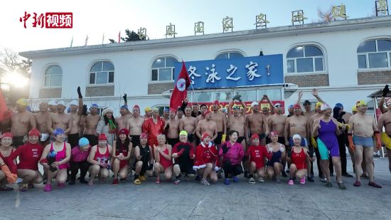吉林長春:冬泳愛好者冰湖暢游迎新年