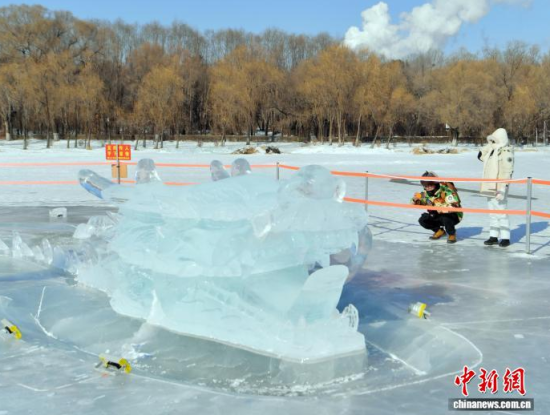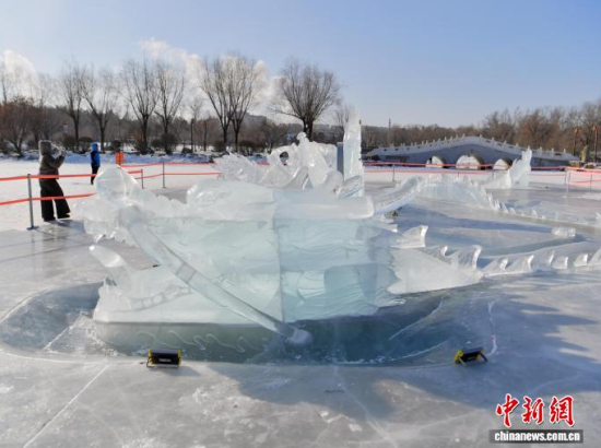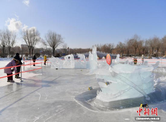 1月20日,在長春市南湖公園,“龍鳳呈祥”冰雕吸引市民駐足觀看 。該冰雕主體為一條長達45米的冰龍與一只展翅約20米的冰鳳凰組成,兩者遙相呼應(yīng),蜿蜒盤旋在冰面上。冰雕充分利用了北方冬季的自然條件,在陽光下晶瑩剔透,成為公園內(nèi)一道醒目的冬日景觀。中新社記者 張瑤 攝