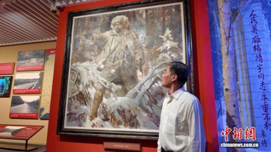 馬繼志在吉林省近現(xiàn)代史館瞻仰祖父油畫。